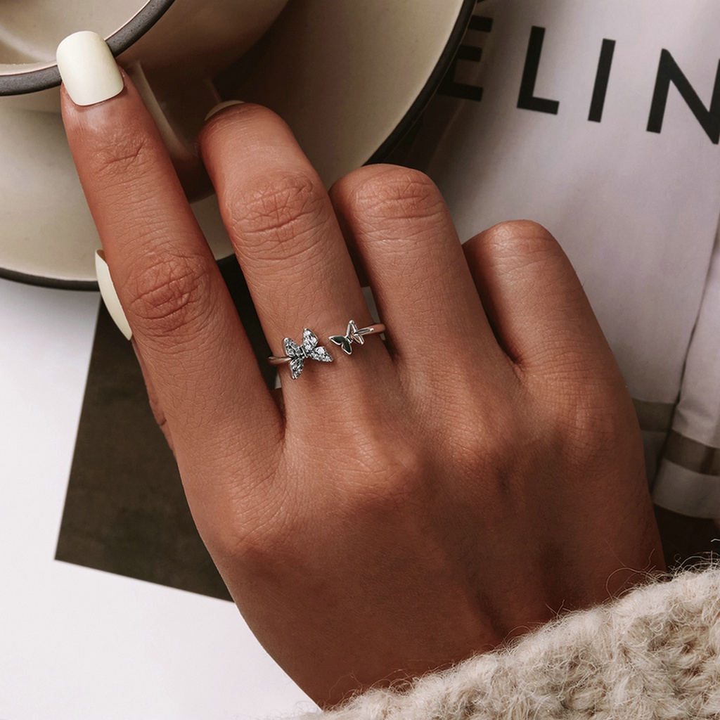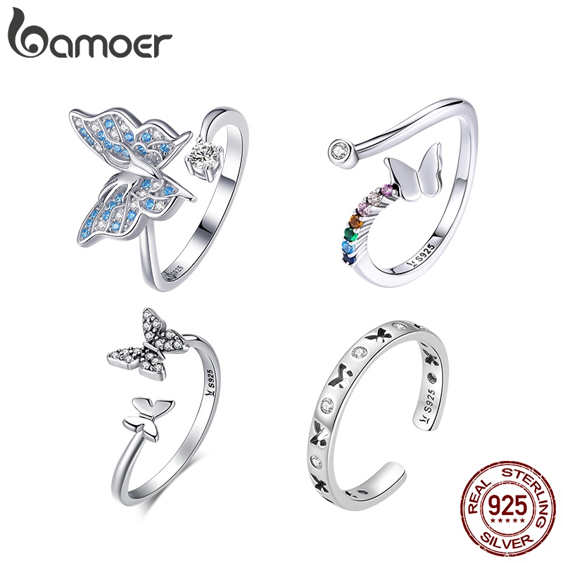 Bamoer Anel Aberto Ajustável 925 Versão Borboleta De Prata Para Jóias Delicadas SCR734