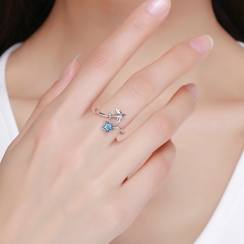 Bamoer Anel Aberto Ajustável 925 Versão Estrela Lua Para Mulheres Jóias Delicadas BSR310