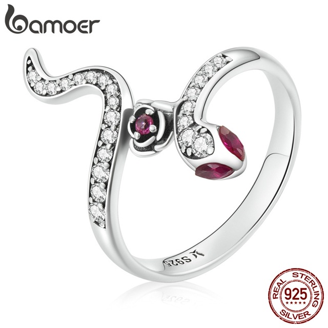 Bamoer Anel Cobra & Rose De Prata 925 Fashion Feminino SCR789-6