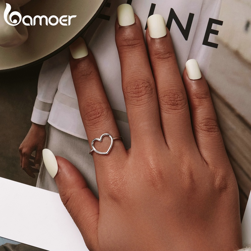 Bamoer Anel De Dedo Coração Prata 925 Feminino/Bijuteria Para Presente De Aniversário SCR641