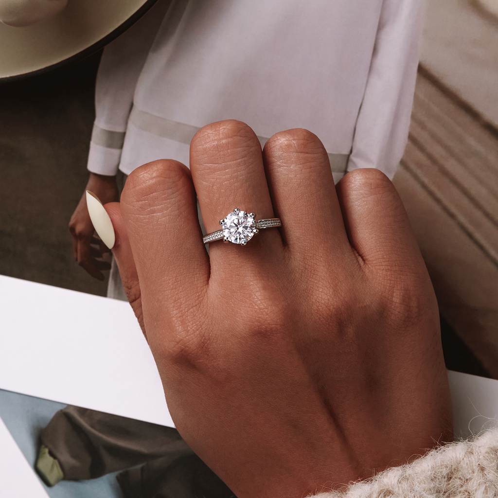 Bamoer Anel De Diamante Zircônia Brilhante De Prata 925 Com Revestimento De Platina