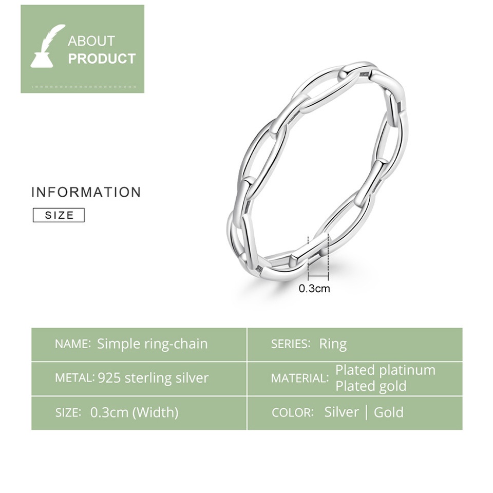 Bamoer Authentic 925 Esterlina Anéis De Design De Corrente De Prata Para Mulheres Moda Jóias BSR211