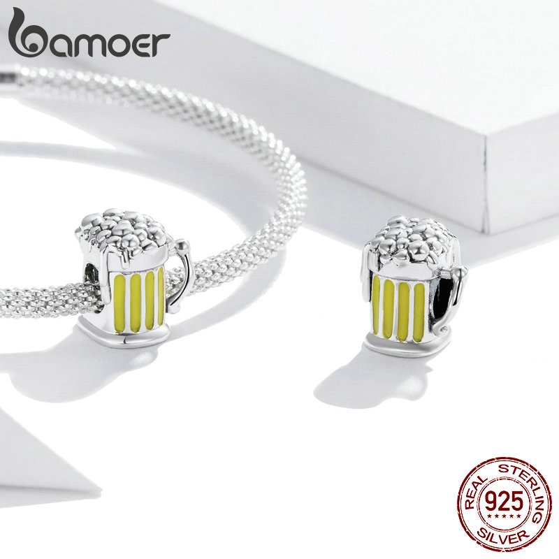 bamoer Beer Glass Charm fit Original Snake Bracelet 925 Sterling Silver Women Jewelry DIY Beads Enamel process Making SCC1671