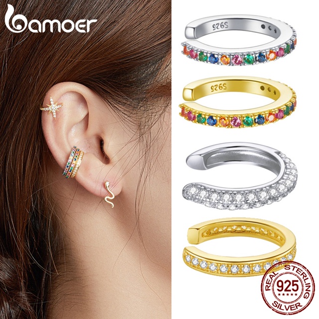 Bamoer Brinco Clip Zircônia Colorido Prata 925 para Casamento Noivado Presente Feminino SCE993