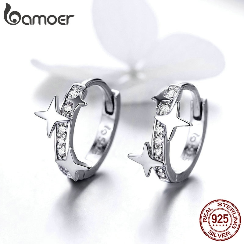 Bamoer Brinco Pequeno De Argola De Prata Esterlina 925/Brincos Pequenos Para Meninas/Bijuteria BSE076