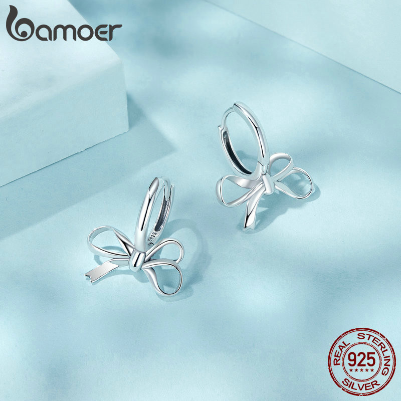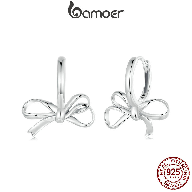 Bamoer Brincos Argola Fita Arco Prata 925 Presente Diário