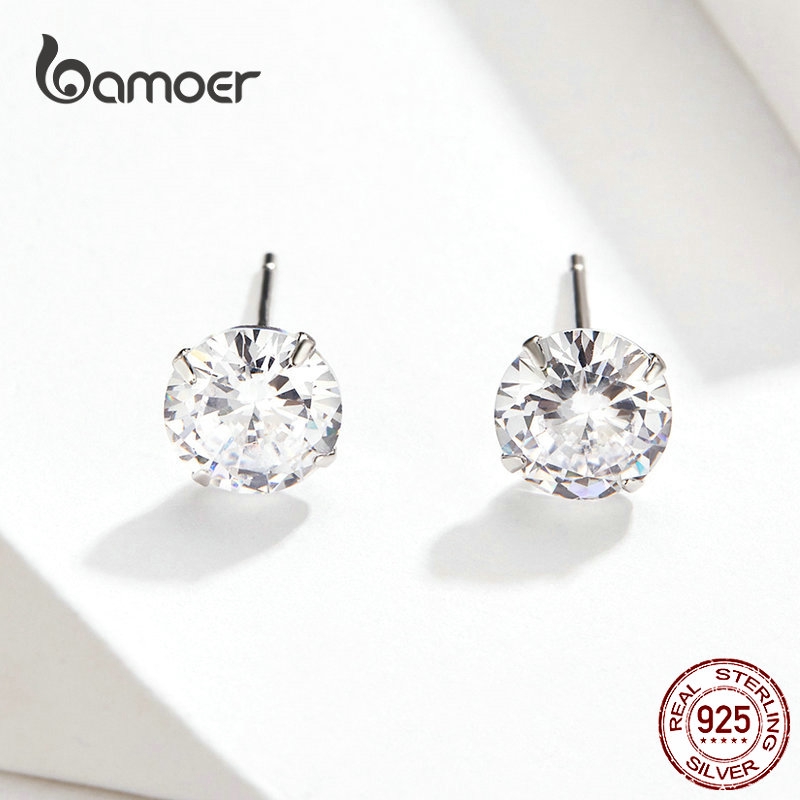 Bamoer Brincos De Prata Esterlina 925 Tarraxa De Zircônio Para Mulheres