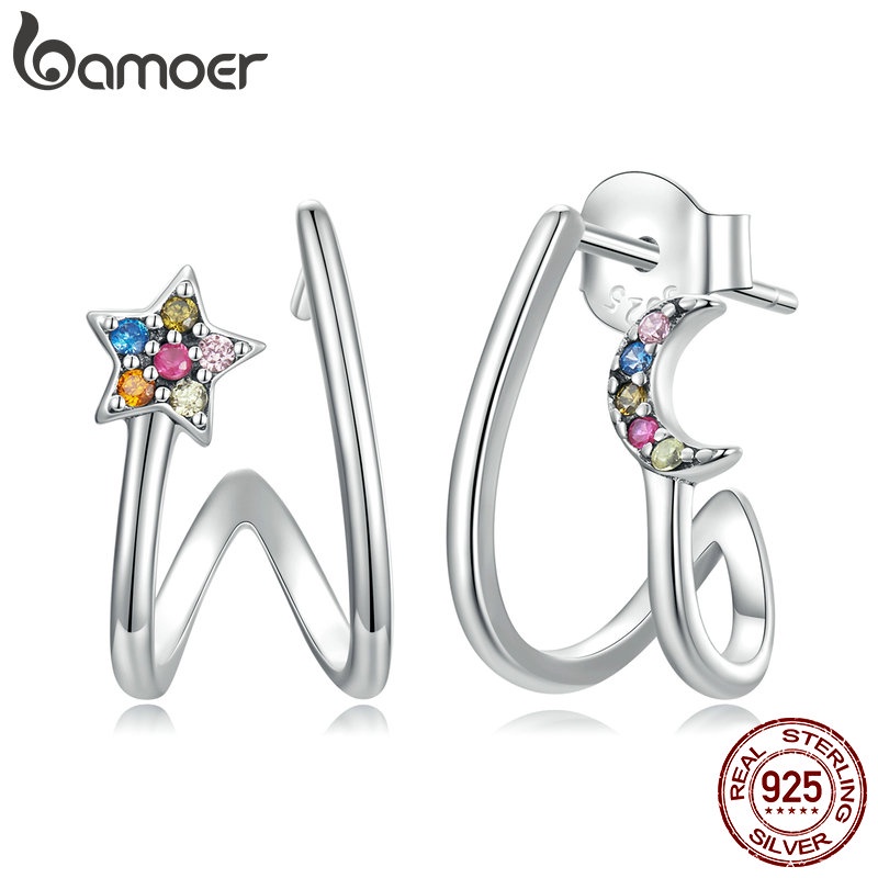 Bamoer Brincos De Prata S925 Com Tarraxa De Estrela E Lua/Joias Femininas