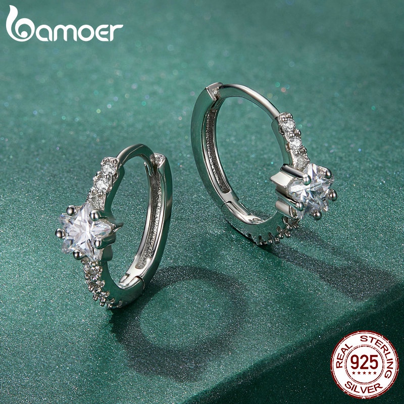 Bamoer Brincos S925 Jóias Femininas Grampos De Prata Com Estrela E Coração De Zircônia