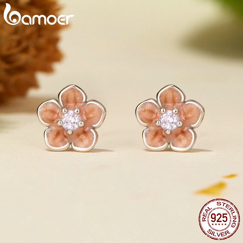 Bamoer Brincos Stud Prata 925 Cerejeira Romântico Presente