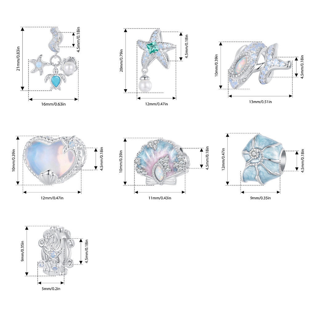 Bamoer Charme Prata 925 Baleia Estrela Concha Mar Azul Presente