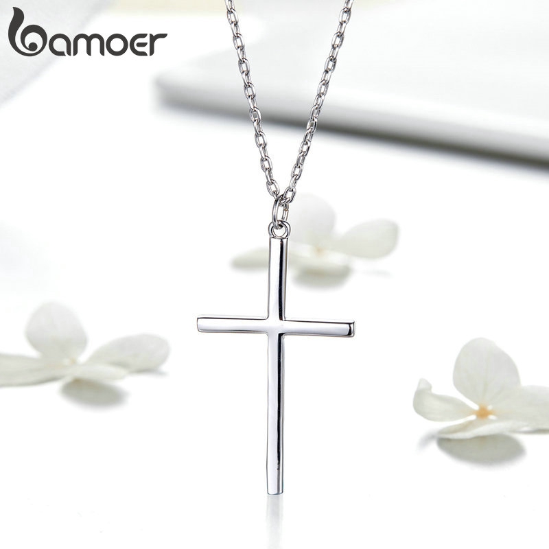 Bamoer Colar Com Pingente Cruz Prateado Cor De Rosa Dourado YIN076-L