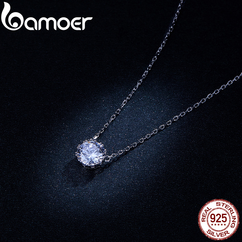 Bamoer Colar Curto de Noiva Prata 925 com Zircônia Minimalista para Casamento BSN085