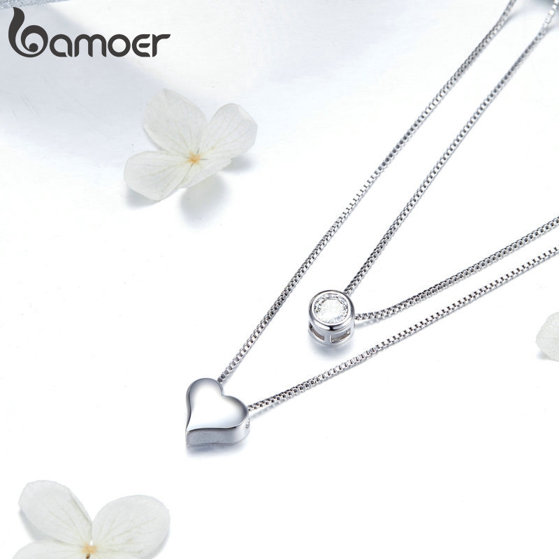 Bamoer Colar Feminino Dupla Camada Com Pingente De Coração De Zircônia Yin087