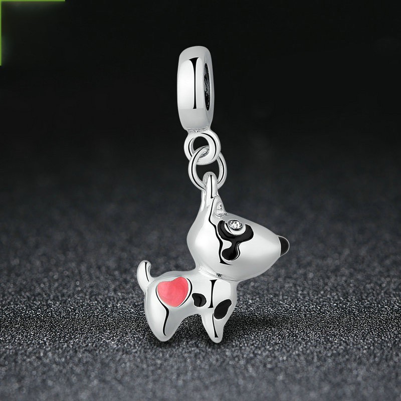 Bamoer Cor Prata Rosa Coração Cão Animais Pingentes Encantos Fit Pulseiras Colares Mulheres Bonito Beads & Jewelry Making Pa5328