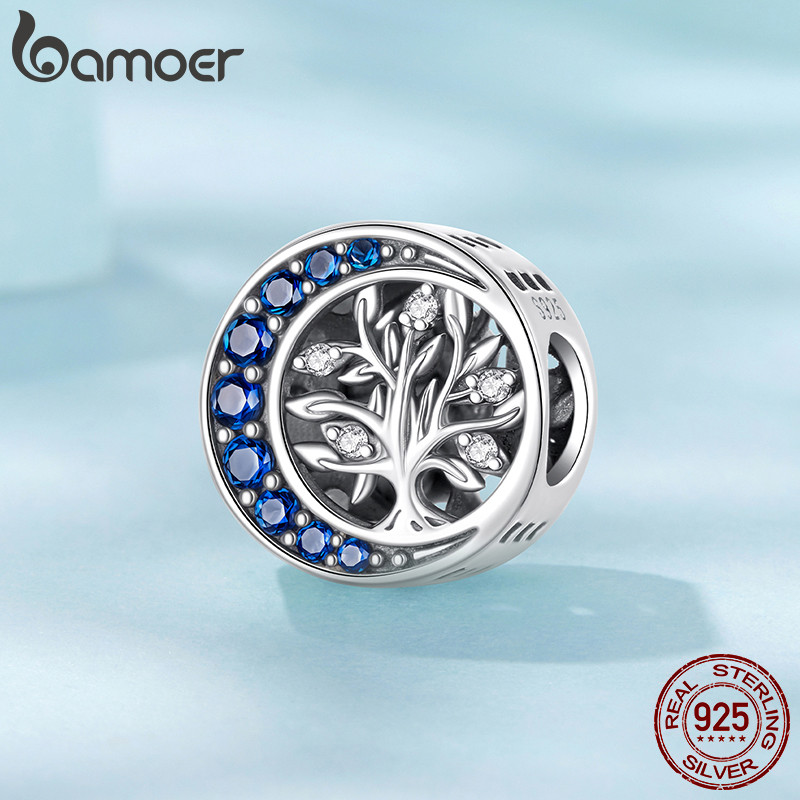 BAMOER Design Original 925 Prata Esterlina Charme Luar Árvore Da Vida Pingente DIY Para Pulseira Presentes Mulher