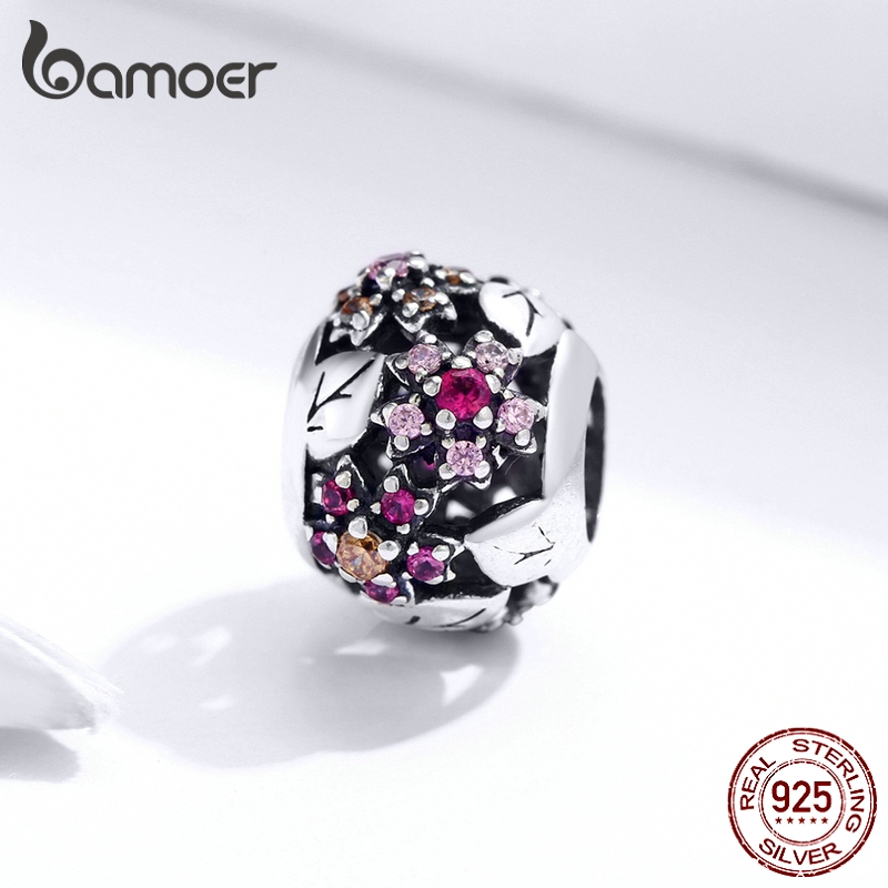 Bamoer Design Retro Sakura Bead Fit For 925 Prata Original Charm Bracelet Diy