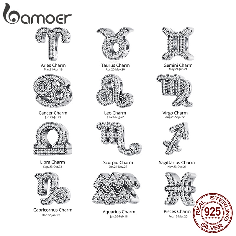 Bamoer Doze Constelações Áries E Contas Leo Hot Item 925 Silver Fashion Jewellery Para Pulseira De Bricolagem