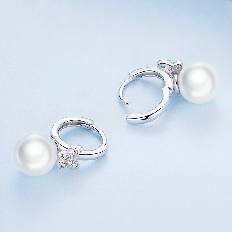 Bamoer Elegante 925 Prata Butterfly Shell Bead Ear Clips Moda Bijuteria Para Presentes