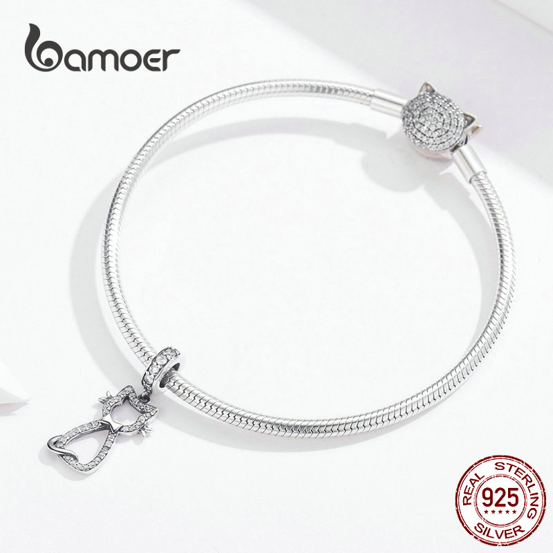 Bamoer Gato Gatinho Charme Pingente De Prata Esterlina 925 Limpar Cz Watting Pet Encantos Fit Para Cobra De Prata Pulseira 3mm Scc1162