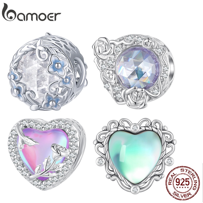 Bamoer Lua De Prata 925 E Pingente De Zircônio Rosa Série Jóias Para