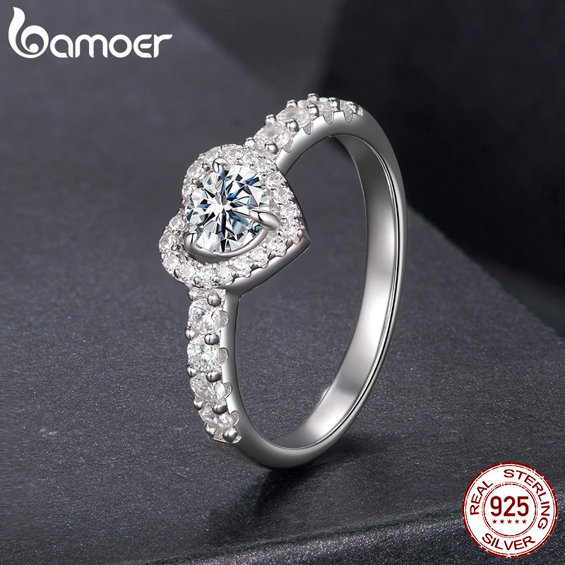 Bamoer Original 925 Anel De Prata Esterlina Coração Moissanite Casamento Jóias Românticas Presente Feminino