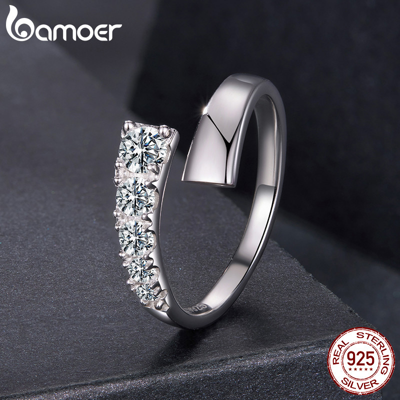 Bamoer Original 925 Anel De Prata Esterlina Moissanite Ajustável Moda Jóias Presente Feminino