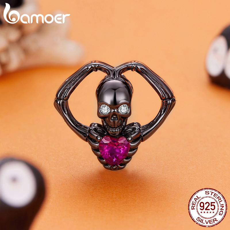Bamoer Original 925 Prata Esterlina Pingente Halloween Coração Crânio Acessórios Série Pulseira