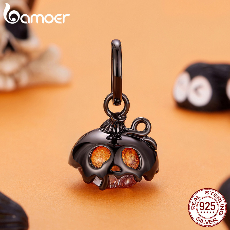 Bamoer Original 925 Prata Esterlina Pingente Halloween Crânio Abóbora Acessórios Série Pulseira