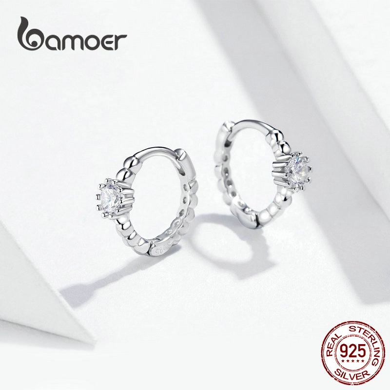 Bamoer Prata Argolas De Orelha Para As Mulheres Limpar Cubic Zirconia Pequeno Círculo Brincos De Cristal Coreano Moda Jóias BSE194