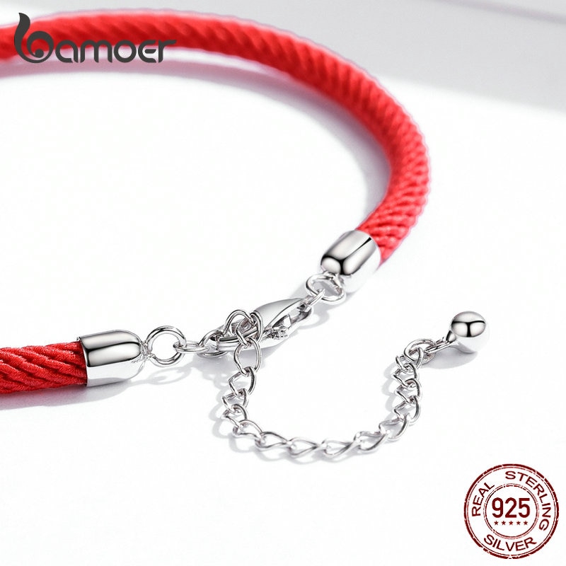 Bamoer Pulseira de Corda Vermelha com Prata 925 Ajustável 16cm a 21cm para Presente Feminino SCB166