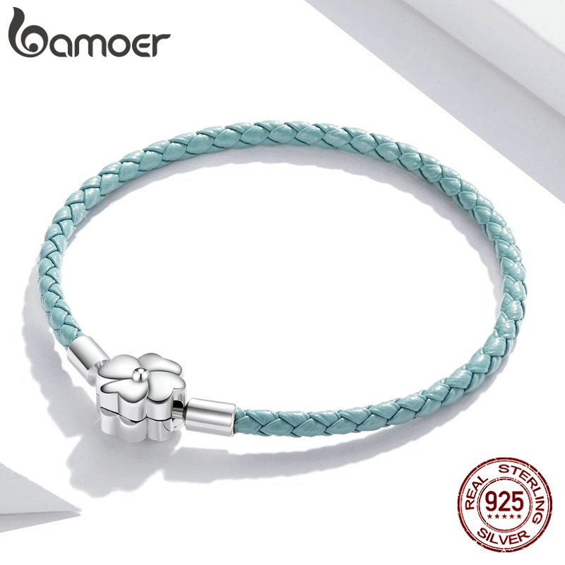 Bamoer Pulseira De Couro Genuíno Com Pingente De Trevo De Prata Esterlina 925 Moda Jóias Para Mulheres & Meninas 2 Estilos Scb220