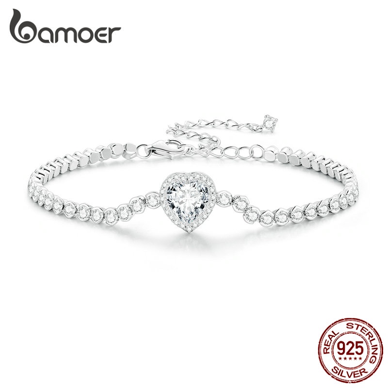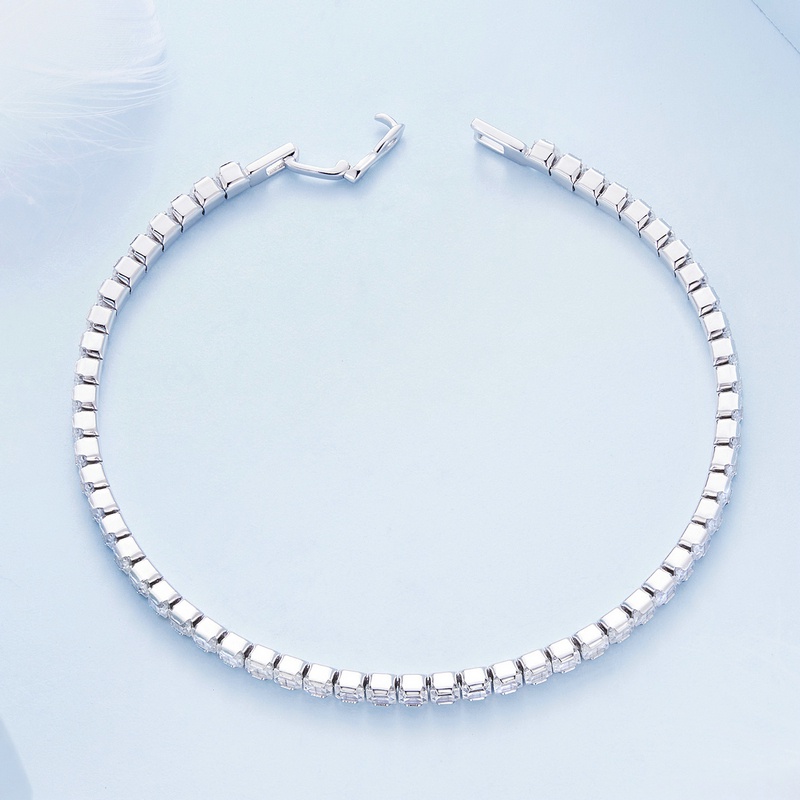 Bamoer Pulseira Simples De Zircônia Quadrada Brilhante Prateada 925 Bijuteria Fashon Para Mulheres