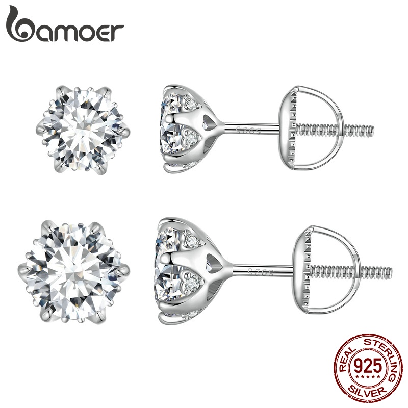 Bamoer S925 0.5ct E 1ct Seis Garras Brincos Moissanita De Casamento Aniversário Para Mulheres MSE020