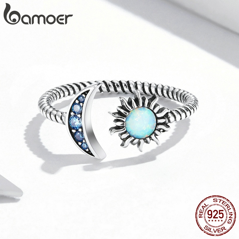 Bamoer S925 Anel Aberto Sol E Lua Design Presentes Para Joalheria De Moda Feminina SCR796