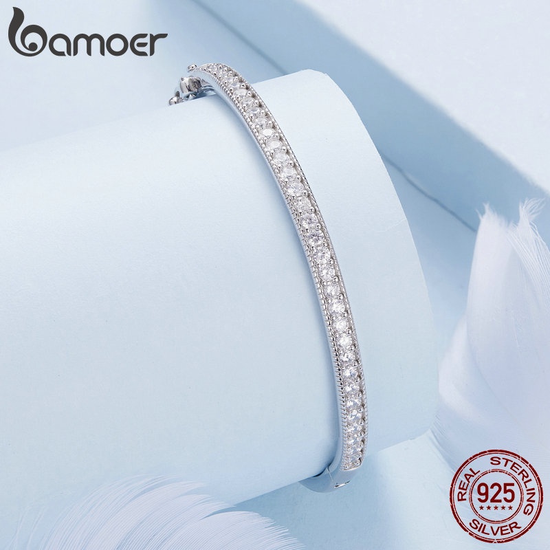 Bamoer S925 Coreano Simple Basic Thin Bracelet Design Exclusivo Presentes De Dia Dos Namorados Para Mulheres 17 E 19cm
