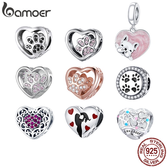 Bamoer Silver 925 PendantPet Paw Print Beads Acessórios Em Forma De Coração Vários Estilos Disponíveis Moda Presentes De Bricolage