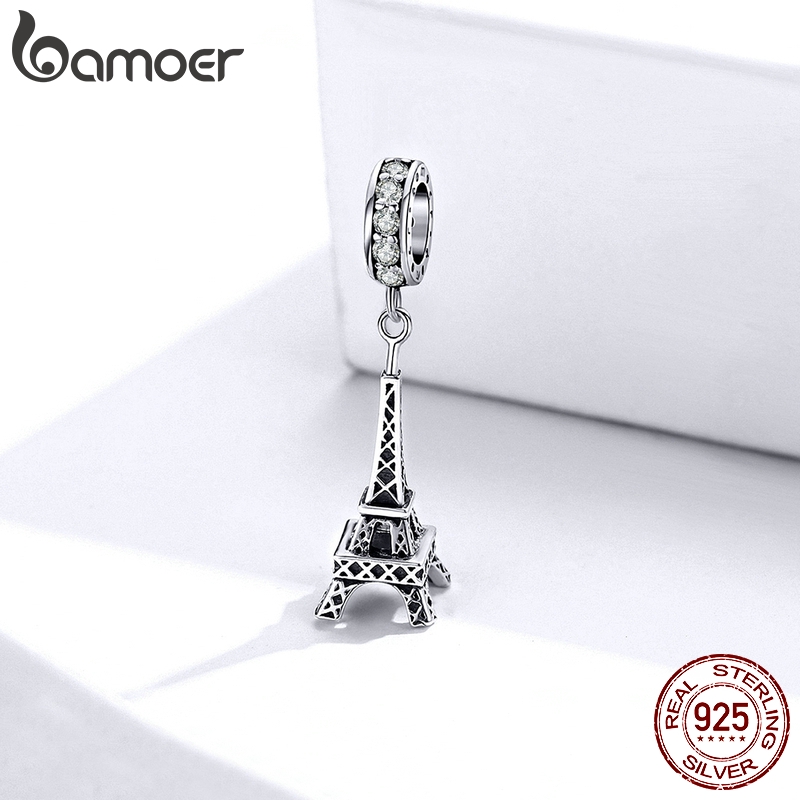 Bamoer Torre De Ferro Pingente Jóias Originais Pulseira DIY Acessórios Moda Feminina 925 Prata