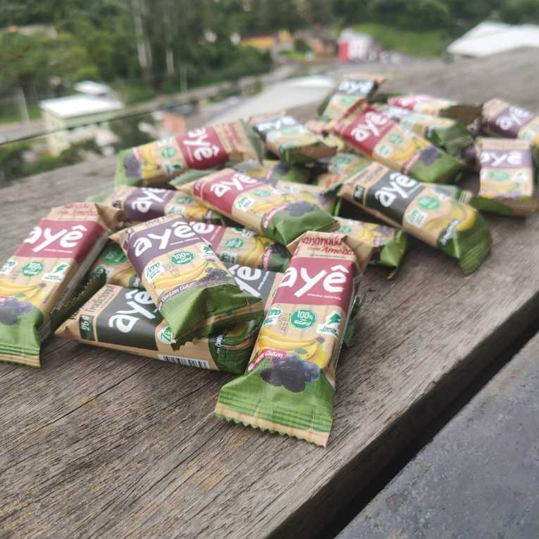kIT COM 3 PACOTES DE 250 GRAMAS CADA. OBS; Sortidos vão aleatório de acordo com o estoque. A Bananada Ayê é naturalmente leve, saudável e saborosa, feita da banana prata e sem adição de açúcares, ideal para quem deseja manter uma dieta com baixa ingestão de açúcares. Em sua composição estão carboidratos, fibras, proteínas e, principalmente, potássio, que tem um papel fundamental para os nossos músculos. Sua versão de BANANADA NATURAL, AMEIXA E UVA PASSA ZERO AÇÚCAR embalagem de 250g é uma opção prática, saudável e econômica. Embaladas individualmente, podem ser levadas com você, dividida com as pessoas e consumidas em qualquer lugar. Cada pacote contém 10 unidades de 25 gramas. Diferenciais Sem glúten Sem lactose Sem adoçantes artificiais Sem corantes artificiais Saudável Sem adição de açúcares E deliciosamente natural. Indicado para quem? Para pessoas que buscam uma alimentação naturalmente leve, saudável, saborosa e, principalmente, por quem faz da saúde um estilo de vida, com muitos exercícios físicos e livres de alimentos artificiais. Ideal para quem deseja manter uma dieta com baixa ingestão de açúcares. Ingredientes;