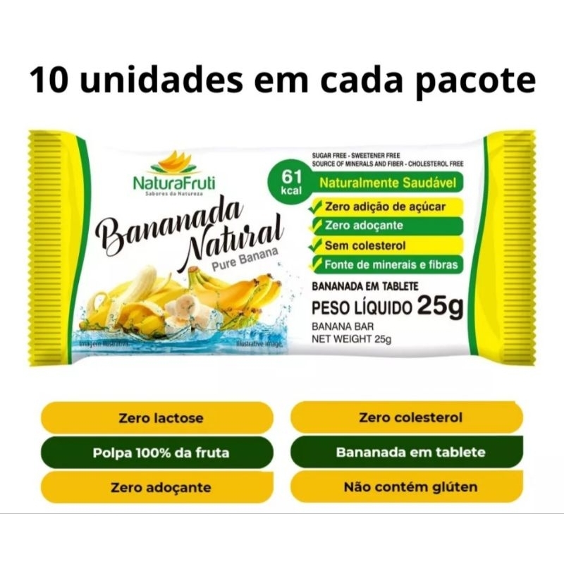 Bananada Tradicional Sem Açúcar 250 g - 10 Unidades por Pacote