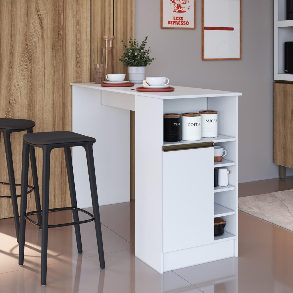 A Bancada Balcão Atenas da Fidelitá é a escolha perfeita para quem busca unir praticidade, elegância e funcionalidade em um único móvel. Com 140cm de largura, ela oferece uma ampla superfície para o preparo de alimentos e pode ser utilizada como apoio para pequenos eletrodomésticos, utensílios e até itens decorativos.Seu design moderno conta com nichos abertos, ideais para deixar à mão objetos de uso frequente, e uma porta com espaço interno fechado, proporcionando organização discreta para mantimentos ou outros itens essenciais. Uma solução inteligente para cozinhas compactas ou planejadas. Destaques do Produto: ✅ Superfície ampla de 140cm para apoio e preparação de alimentos ✅ 1 porta com espaço interno fechado para armazenar mantimentos ou utensílios ✅ Nichos abertos para organização e fácil acesso aos itens do dia a dia ✅ Design moderno que valoriza o ambiente ✅ Estrutura resistente com excelente acabamento Dimensões: 📌Altura: 93cm 📌 Largura: 140cm 📌Profundidade: 50cm Informações Importantes: 🛠️ Montagem: O produto segue desmontado, com manual de instalação e todas as ferragens necessárias. A Fidelitá Móveis não realiza montagem. 📅 Garantia: 6 meses para defeitos de fabricação. 🖼️ Imagem meramente ilustrativa. ⚠️ Verifique as dimensões do espaço disponível antes da compra