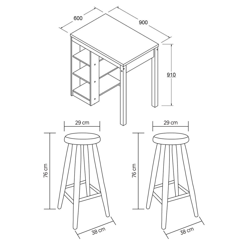 * APÓS O PEDIDO FINALIZADO, NÃO ACEITAMOS TROCA DE COR DO PRODUTO E NEM ALTERAÇÃO DE ENDEREÇO DE ENTREGA. FOTOS DOS PRODUTOS REAIS. Com um acabamento impecável em todos os lados, a Bancada de Cozinha Ditália não só complementa, como também divide o espaço de forma elegante. Sua bancada multifuncional, é perfeito para refeições e encontros sociais na cozinha. Você pode aproveitar o seu design inteligente para armazenar utensílios de cozinha e aparelhos eletrodomésticos, transformando-a em um eficiente espaço adicional de armazenamento. Uma das laterais da bancada consta com 3 prateleiras, e a sua outra lateral oferece espaço para acomodar 2 banquetas confortavelmente. Assim, você terá tudo o que precisa ao seu alcance, de maneira organizada e funcional. Transforme a sua cozinha em um ambiente elegante, prático e cheio de personalidade. Aproveite cada momento e desfrute de um espaço perfeito para suas atividades culinárias e momentos de convivência. CARACTERÍSTICAS DA BANCADA - Estrutura em MDP 15 mm com revestimento em pintura UV fosca. - Estruturas laterais em MDF 50 mm, super-resistentes. - Tampo padrão Riviera (tom de cor bege claro) em MDP 30 mm, com revestimento em melamina, ideal para manipular alimentos. - Base superior suporta até 30 kg. - Possui 3 prateleiras que suportam até 5 kg cada. - Peso: 23,40 kg - Largura: 90 cm - Altura: 91 cm - Profundidade: 60 cm CARACTERÍSTICAS DA BANQUETA (UNIDADE) - Madeira maciça de eucalipto - Peso: 3 kg - Largura da base: 38 cm - Altura: 76 cm - Diâmetro assento: 29 cm Acompanha kit ferragens e manual de montagem (montagem não inclusa). Este produto é vendido desmontado em 3 volumes, embalados em caixa de papelão com isopor nas laterais e revestidos com plásticos termoencolhível. A fixação é feita por girofix, cavilhas e parafusos, não é necessário parafusar na parede. PERGUNTAS FREQUENTES 1- O produto é entregue montado? Resposta: Nossos produtos são entregues desmontados. Os móveis são acompanhados de todos componentes necessários (manual de montagem, parafusos, pregos, puxadores e etc..) para que possam ser montados com facilidade. 2- Vocês oferecem serviço de montagem? Resposta: Não disponibilizamos este serviço. 3- Qual o valor da entrega? Resposta: O valor referente à entrega dependerá do destino final da mercadoria, para calcular o valor, é considerado o CEP do consumidor. 4- Os produtos são novos? Resposta: Sim, trabalhamos apenas com produtos novos. 5- Vocês atendem todos os estados do Brasil? Resposta: Sim, enviamos nossos produtos para todo o Brasil. LIMPEZA Limpar utilizando apenas pano umedecido com água, nunca utilizar abrasivos ou esponjas de aço. GARANTIA Garantia de 3 meses (contra defeitos de fabricação). OBSERVAÇÕES - Montar o móvel com o produto virado de costas, para montagem, forrar o chão com o papelão das embalagens. - Não expor o móvel a fontes de calor ou de umidade. - As imagens indicam uma sugestão de uso e são apenas ilustrativas, os objetos decorativos não estão inclusos. - As cores dos produtos podem variar devido à reprodução sobre a tela do dispositivo.