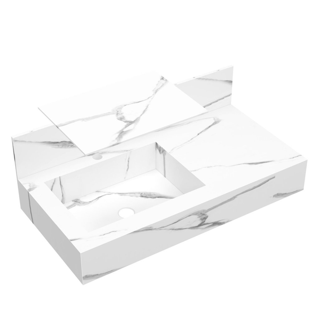 Bancada em Porcelanato para Banheiro 80cm Pró com Cuba Esculpida Calacata/Offwhite