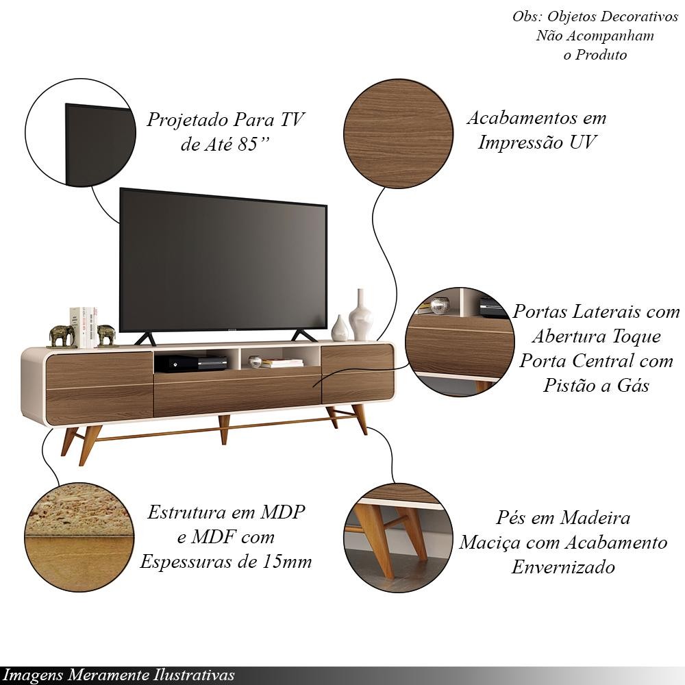 Bancada Europa Pés em Madeira para TV até 85 Polegadas Off White/Castanho G26 - Gran Belo