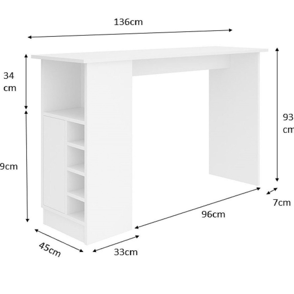 Bancada com Adega 136 cm – Funcionalidade e Estilo para sua Cozinha! A união perfeita entre praticidade e design moderno. Esta bancada multifuncional de 136 cm de largura é ideal para quem busca otimizar o espaço com elegância. Com altura de 93 cm, ela oferece conforto na medida certa para refeições rápidas, cafés ou momentos de descontração. Seu diferencial está na lateral funcional, equipada com nichos que funcionam como adega e espaço para taças ou utensílios, além de um armário discreto para armazenar o que for necessário no dia a dia. Fabricada em estrutura 100% MDP, com acabamento branco e linhas retas, ela se adapta facilmente a ambientes contemporâneos. Medidas totais: Largura: 136 cm Altura: 93 cm Profundidade: 45 cm Espaço livre entre as bases: 96 cm Estilo: Moderno Peso (kg): 28 Garantia: 03 Meses Altura (cm): 93 Acabamento: Finish Foil Largura (cm): 136 Possui Pés: Não Possui Portas: Sim Tipo de Porta: Bater Suporta Até (kg): 15 Acompanha Tampo: Não Profundidade (cm): 45 Escala de Brilho: Semi-Fosco Material da Porta: MDP Origem do Produto: Nacional Ambiente Principal: Cozinha Material Principal: MDP Acabamento da Porta: Finish Foil Sapatas Niveladoras: Não Material da Prateleira: MDP Acabamento da Prateleira: Finish Foil Tipo de Puxador da Porta: Externo Escala de Brilho da Porta: Semi-Fosco Peso Máximo por Prateleira: 2 Material do Puxador da Porta: ABS Escala de Brilho da Prateleira: Semi-Fosco Tipo de Dobradiça/Corrediça da Porta: Simples Material da Dobradiça/Corrediça da Porta: Metálica Marca: Móveis Menezes Cor Interna: Branco Cor: Branco Cor do Produto: Branco Itens Inclusos: 1 Bancada, Kit de Ferragens e Manual de Montagem Cor Predominante: Branco Linha ou Coleção: Realeza