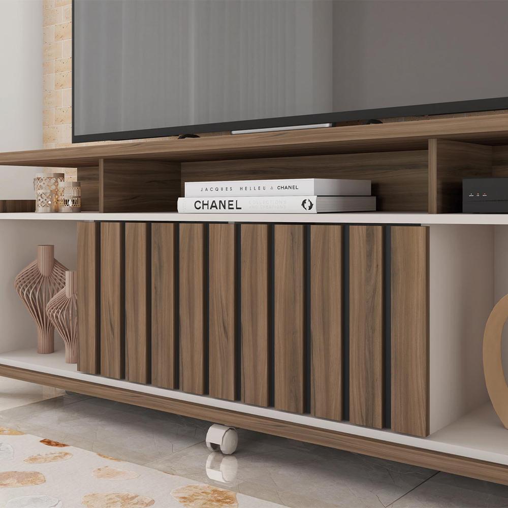 A bancada Stars irá completar seu ambiente, possui elegância além de um design único e exclusivo. Suporta Televisores de até 65 Polegadas além de possuir 1 porta de correr. Feito em MDP e HDF possui maior durabilidade e resistência, transmitindo maior segurança ao móvel. Dimensões do Produto Montado: - Peso: 41,4 cm; - Altura: 63,4 cm; - Largura: 160 cm; - Profundidade: 38 cm. - Possui 7 Nichos; - Possui 6 Rodízios; - Possui 1 Prateleira; - Possui 1 Porta de correr; - Suporta Televisores até 65 Polegadas; - Contém furação para passagem de fios; - Tonalidade do Produto: Nogueira San Remo/ Off Perfect; - Estrutura em MDP de 12mm, 18mm e 25mm de espessura. HDF de 3mm de espessura. Peso suportado: - Base 5 kg; - Nicho 3 kg; - Tampo 40 kg. - Acompanha manual de montagem; - Garantia 90 dias contra defeito de fabricação; - Este móvel chegará em sua casa separado em 1 volume. Dimensões da embalagem: - Altura: 39,1 cm; - Largura: 166,2 cm; - Comprimento: 14,3 cm. Recomendações de limpeza: - Limpar com pano macio, seco ou úmido, sem uso de produtos abrasivos. Pois, podem trazer danos ao produto. Sobre a entrega: - As transportadoras contratadas, não realizam entregas em apartamentos. Realizando assim a entrega na portaria do prédio. *Produto segue desmontado, montagem por conta do comprador; *Imagens do produto são meramente ilustrativas.