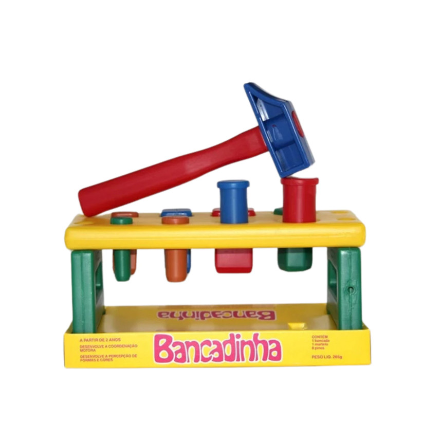 Brinquedo bancadinha Liquiplast modelo educativo com 01 bancada + 01 martelo + 08 pinos. Dimensão 26,5 X 14,5 X 12CM. 23277