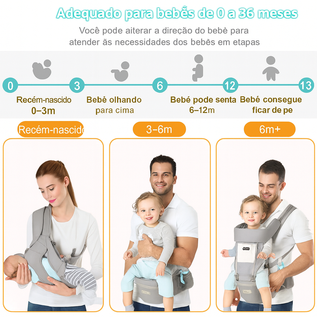 🍼 Banco de Cintura Para Porta-Bebês – Artefato Universal 4 Estações Modelos: Azul | Rosa | Verde | Sortido Carregue seu bebê com conforto, segurança e praticidade! Este Porta-Bebê Multifuncional 3 em 1 é ideal para mamães e papais que buscam mobilidade e ergonomia. Ele oferece suporte completo para a coluna do bebê e para a sua, reduzindo dores na lombar e deixando os passeios muito mais leves. ⭐ Principais Funções (3 Modelos de Uso) ✔ Transporte Único — Para uso rápido e prático no dia a dia ✔ Assento Hipseat (Hip Hop) — Funciona como banco de apoio para evitar peso direto na coluna dos pais ✔ Modelo Combinado — Permite transportar o bebê na frente, costas ou lateral com máximo conforto 👉 Ao total, oferece 15 maneiras diferentes de transportar o bebê, se adaptando a diversas idades e situações. 👶 Faixa Etária e Capacidade Indicado para 0 a 36 meses Suporta até 30 kg “4 anos, um transportador!” — acompanha o crescimento do bebê 🧵 Materiais de Alta Qualidade Algodão de rosto (macio e confortável para o bebê) Revestimento em Poliéster (resistente e durável) Spandex (material elástico para melhor ergonomia) Peso aproximado: 0,8 kg Circunferência da cintura ajustável: 71–118 cm 🌟 Diferenciais do Produto ✔ Design ergonômico de almofada 45° — evita abertura excessiva das perninhas do bebê ✔ Suporte traseiro longo — protege a coluna e oferece postura correta ✔ Painel traseiro alongado — protege do vento, sol e frio ✔ Grande capacidade de armazenamento — permite guardar mamadeira, fraldas, chaves, celular e muito mais ✔ Confortável em todas as estações do ano ✔ Reduz a pressão na lombar dos pais ✔ Ideal para passeios, viagens, compras e rotina diária 🎨 Cores Disponíveis Azul Rosa Verde Sortido 📦 Conteúdo da Embalagem 1 Porta-bebê multifuncional hip seat 3 em 1