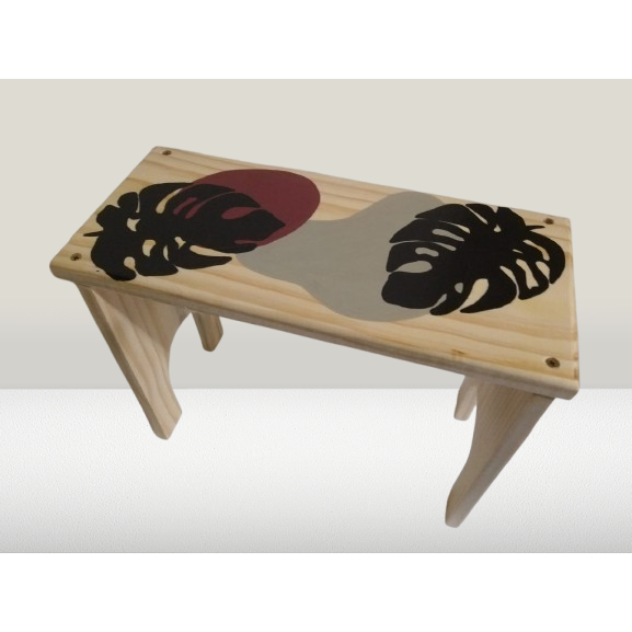 Banquinho em Madeira Estilo Boho Banquinho artesanal feito em madeira maciça, com acabamento natural que valoriza os veios da madeira. A pintura no estilo boho traz um toque artístico e descontraído, combinando formas orgânicas e cores vibrantes como azul, amarelo e vermelho, além de detalhes botânicos delicadamente desenhados à mão. Ideal para compor ambientes acolhedores e cheios de personalidade, como varandas, salas de estar ou quartos com decoração criativa e afetiva. Tamanho: 23 cm Altura - 16 cm Largura - 33 cm Comprimento