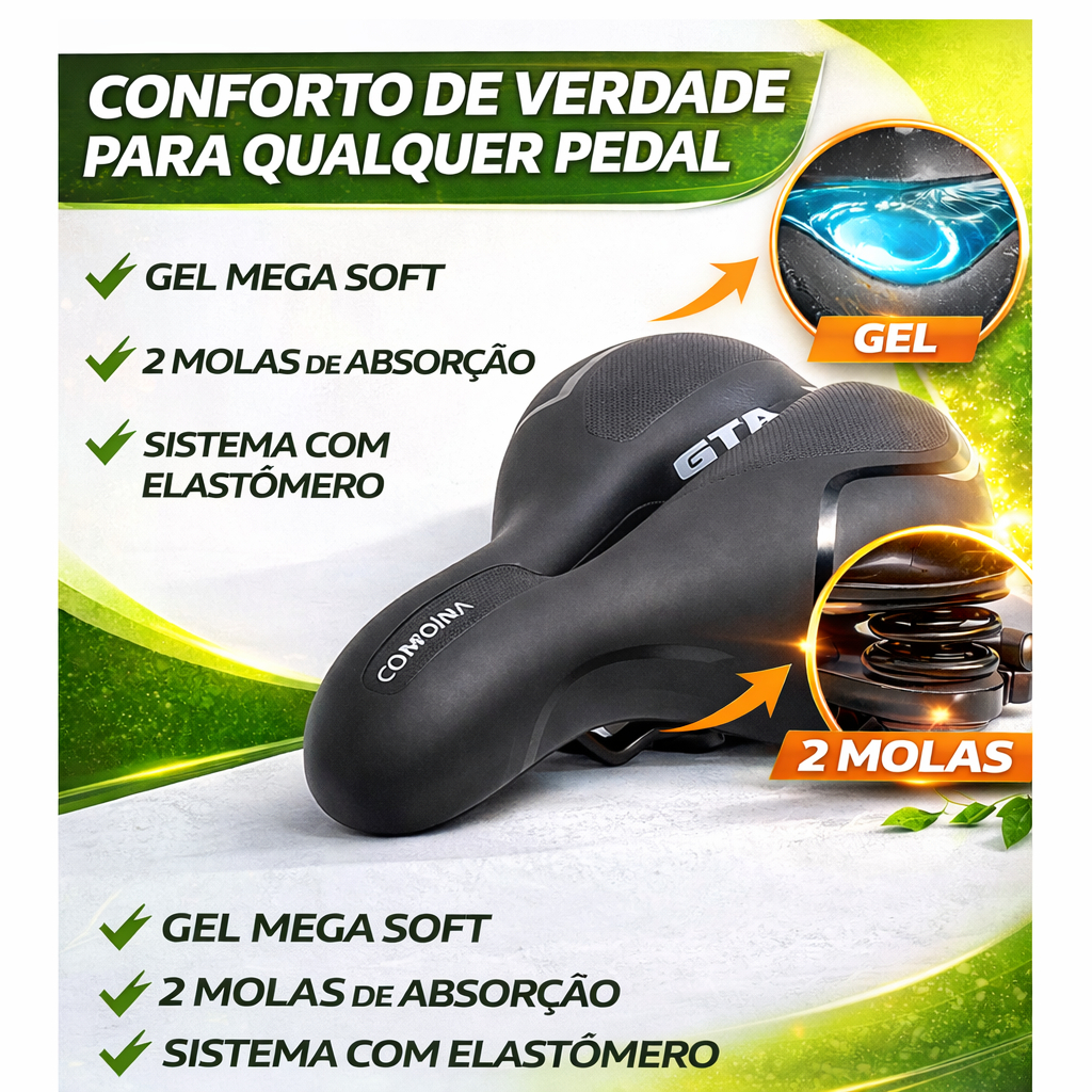 Selim GTA Mega Soft Comfort Tech Conforto real para qualquer pedal Se você sofre com banco duro, desconforto ou dor após poucos minutos de uso, o Selim GTA Mega Soft Comfort foi desenvolvido para mudar isso. Projetado para oferecer máximo conforto em pedaladas longas e curtas, ele combina gel, molas e elastômero para reduzir impacto, vibração e trepidação. Diferenciais do produto • Gel Mega Soft para melhor absorção de impacto • Sistema com 2 molas para amortecimento eficiente • Elastômero que reduz vibrações • Modelo vazado para melhor ventilação e conforto anatômico • Refletor traseiro para mais segurança • Estrutura reforçada em aço • Acompanha carrinho para instalação Especificações técnicas Modelo: GTA Mega Soft Comfort Tech Dimensões: 260mm x 200mm Peso aproximado: 550g Composição: Nylon, Vinil e Ligas Metálicas Material da estrutura: Aço com revestimento em PU Modalidade: MTB e uso urbano Ideal para • Uso urbano diário • Pedaladas recreativas • Trilhas leves • Ciclistas que buscam mais conforto e estabilidade Mais conforto, mais segurança e mais durabilidade para sua bicicleta.
